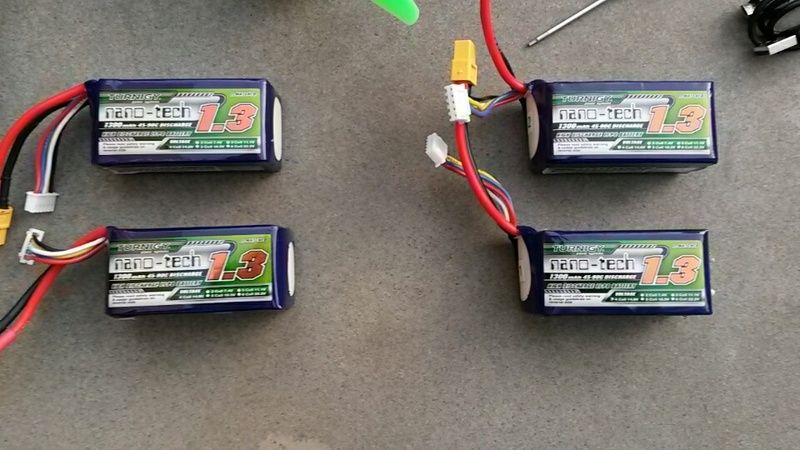 4x lipos Turnigy nano tech 4s 1300mah 45-90C.